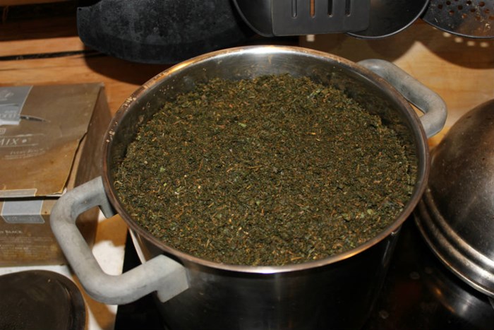 Иван-чайМногие слышали название «иван-чай», и я в том числе. Но никогда не воспринимала это буквально – чай, который пьют. Иван-чай, он же кипрей узколистный, растёт у нас в достаточно большом объёме, является хорошим медоносом. Но их него также делают чай, из листьев и соцветий. В период цветения, пока ещё не появились семена с пушинками (они разлетаются, размножается самосевом), листья нужно собрать немного подсушить в тени, пропустить через мясорубку через крупное ситечко (желающие могут сделать это и вручную, смысл этой процедуры в разрывании диафрагм листьев, чтобы листья дали сок) сложить в большую ёмкость, утрамбовывая, накрыть влажным полотенцем для ферментации и ловить момент Должен измениться запах, с травяного на фруктовый. Потом сушить, либо в духовке на 100 градусах при включённой функции конвекции и открытой дверце, либо в бане, если объём большой Сухой чай засыпаем в пятилитровые банки из-под воды На год нашей семье из трёх человек нужно четыре таких банки при условии постоянного потребления. После сушки чаю надо постоять минимум месяц, для обогащения вкуса, а вообще, чем дольше, тем лучше, богаче будет вкус. Напиток из кипрея узколистного известен с давних пор, как на Руси, так и далеко за её пределами. Говорят, что этим напитком объяснялась сила русских воинов. Когда мы жили в Санкт-Петербурге, то много ездили по окрестностям, в т.ч. были и в Копорье. Второе название напитка из иван-чая – копорский чай, получивший своё название от поселения-крепости Копорье, где изготавливали такой чай. Иван-чай не оказывает тонизирующего, возбуждающего действия, его можно пить на ночь, можно пить детям и сердечникам, можно принимать людям, практикующим духовную жизнь, которым не рекомендуется употреблять никакие стимуляторы. Также можно приготовить чай аналогичным способом из листьев малины