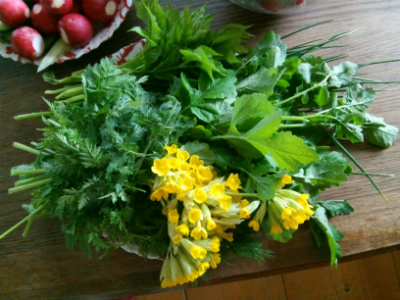Лесная примула, она же барашек или первоцвет. Помимо прекрасного внешнего вида можт послужить источником первых зелёных витаминов. Съедобны листья и цветы растения, листья слегка горчат. Вполне заменяет культуру салат.